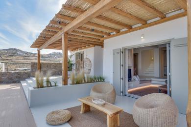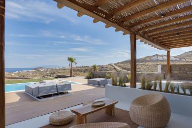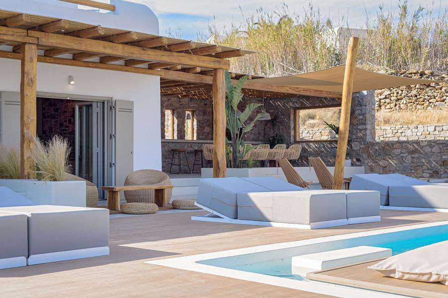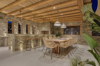 Στην εξωτερική τραπεζαρία 10 ατόμων, στο πέτρινο bar με το BBQ, στα χτιστά καθιστικά και τους καναπέδες σε διαφορετικά επίπεδα, απολαμβάνεις την υπέροχη θέα.