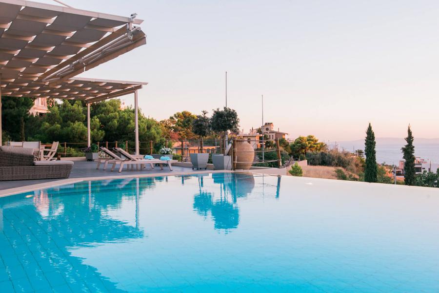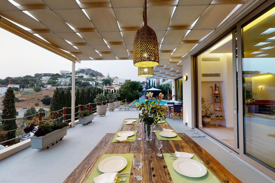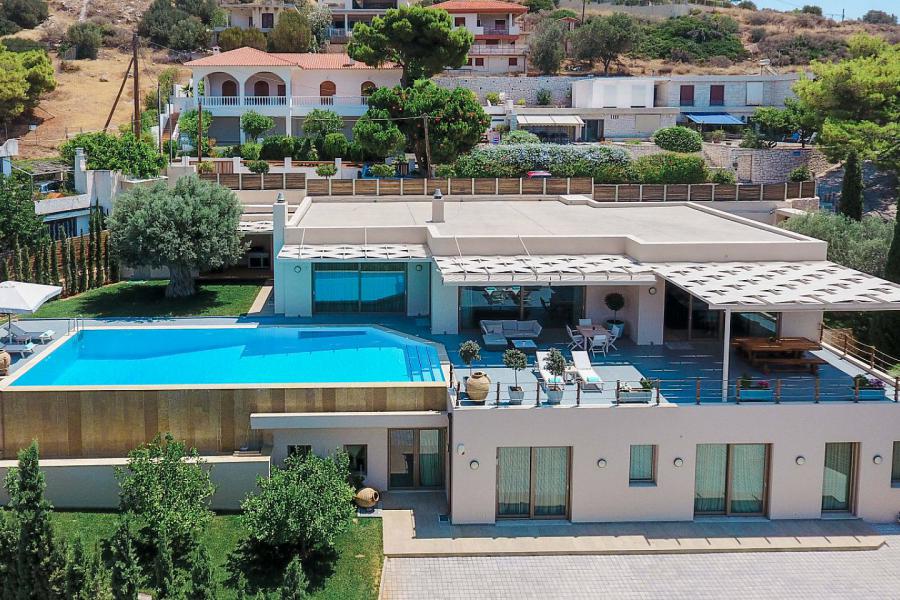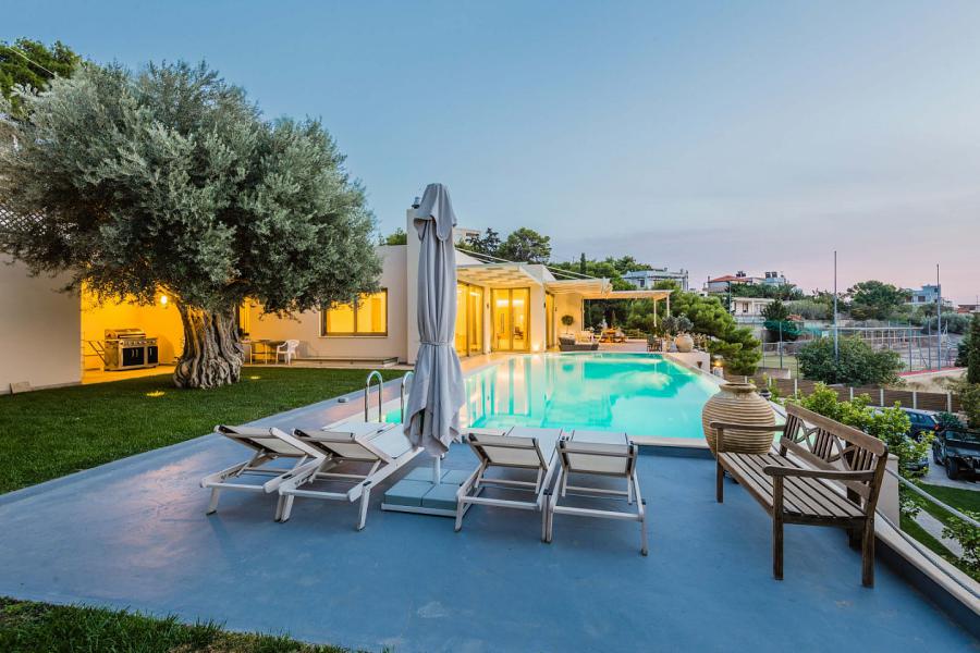 This newly built luxurious villa is located in the area of Lagonissi, just before you reach the Lagonissi Grand Resort Hotel.