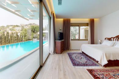 This amazing villa is a two level private deluxe villa of 500m2, very close to sandy beaches with a panoramic and unobstructed sea view, beautiful sunsets, and a big infinity swimming pool.