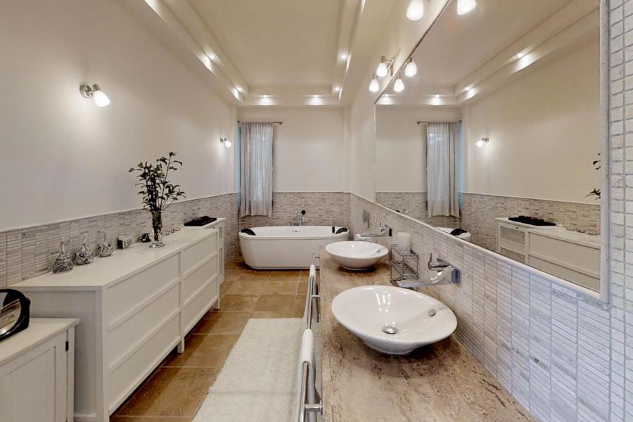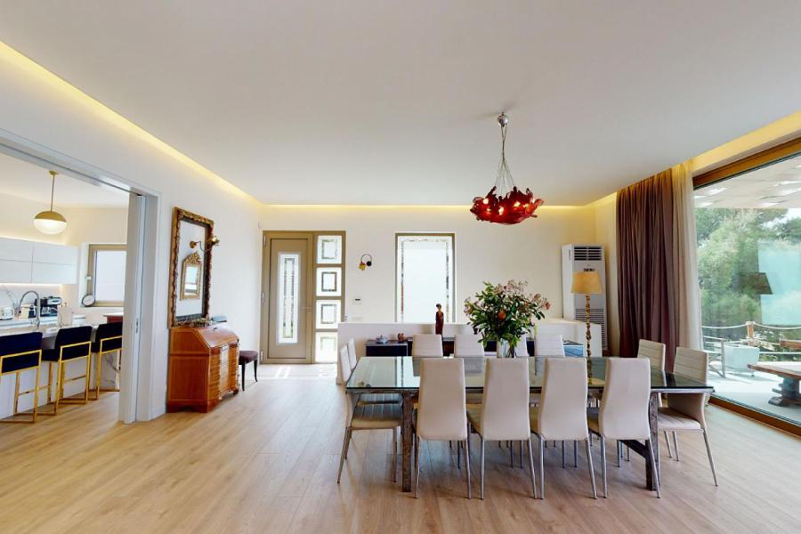The villa also offers a modern central heating and cooling system, internet, home cinema, satellite TV, advanced security systems, and a central vacuum cleaning system.