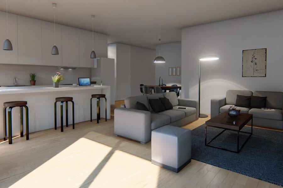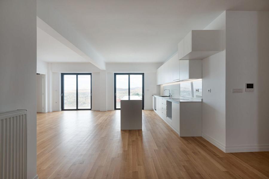The apartment is equipped with a security alarm, ensuring the safety of the occupants and their possessions. Overall, this modern minimal apartment offers a comfortable and secure living space, making it an excellent choice for those who value modern design and convenient amenities.