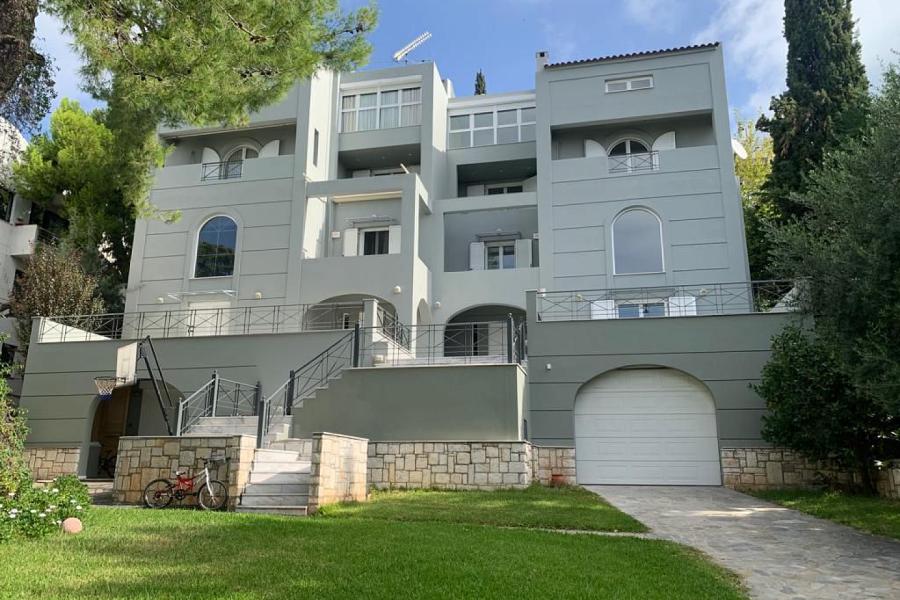 Nestled in Politeia, this luxurious maisonette is located just moments from Politeia Square, offering a tranquil retreat amidst lush greenery. With 350 sqm of main living space and 100 sqm of auxiliary areas, this residence is thoughtfully designed across multiple levels.