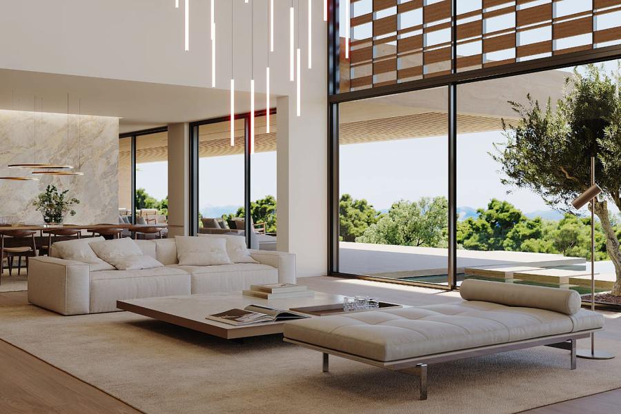 3 elegant living areas with floor-to-ceiling glazing