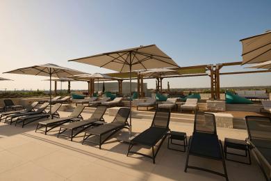 Wellness facilities include a fully equipped fitness center and a 400 m² luxury spa dedicated to relaxation and rejuvenation. Residents and guests are welcomed through an elegant double-height lobby with a sculptural ceiling and panoramic glass façade, creating a striking first impression and a true sense of arrival.