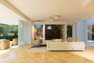This exceptional ground-floor maisonette unfolds across three levels and offers an impressive sense of space and elegance just 80 meters from the sea in central Voula, overlooking a tranquil park. Designed for seamless indoor–outdoor living, it is set within a generous 298 sqm private garden with a swimming pool, creating a serene setting for both relaxation and entertaining.