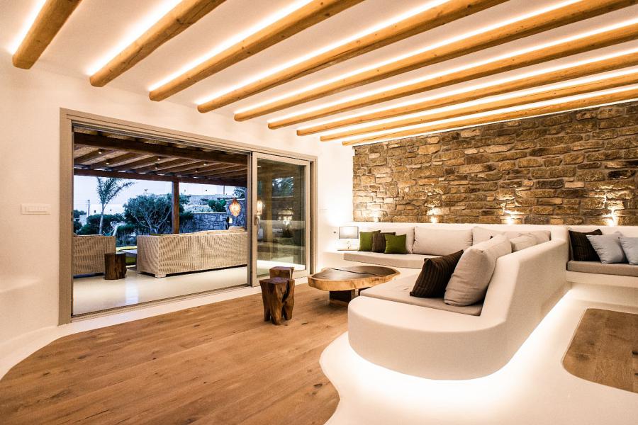 The property can accommodate 8 guests. The house comprises two levels that open to a generous outdoor space with large pool bar & BBQ facilities, which make easy for you to prepare homemade meals for your loved ones during the warm summer nights. The ground floor and the upper level consists of 4 bedrooms total, one cozy living area and a fully equipped kitchen with a dining table for 8 guests.