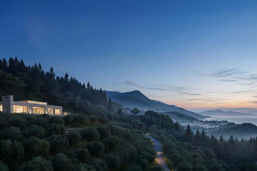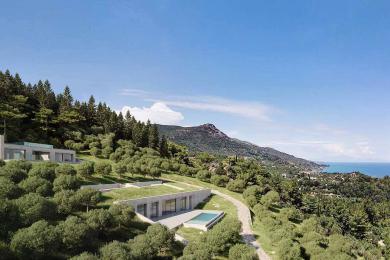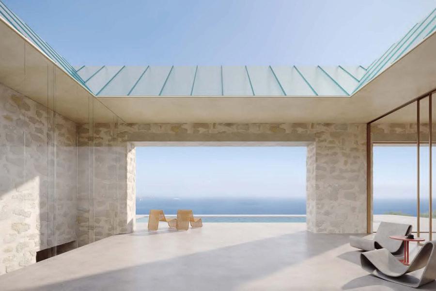 Set on a sprawling 6,000 sqm plot, the estate consists of a stunning 240 sqm main villa positioned elegantly atop the hill, maximizing the spectacular sea views and surrounding natural beauty. The villa’s most striking architectural feature is its impressive glass roof structure, which floods the interior spaces with natural daylight and creates a bright, open, and inviting atmosphere throughout the home.