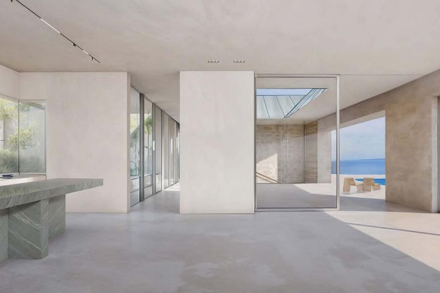 Complementing the main residence is a beautifully designed 140 sqm subterranean guest house, where thoughtful architecture blends comfort with innovation. Every room—including the bedrooms, kitchen, and living area—features large panoramic windows framing the mesmerizing sea views. Carefully designed sunken courtyards and backyards allow natural light to enter from the rear, ensuring bright and airy living spaces despite the partially underground structure.