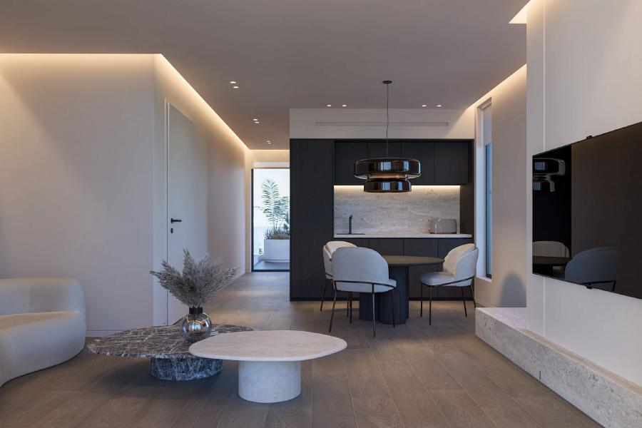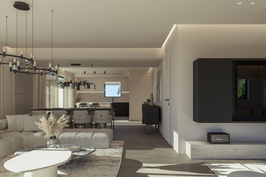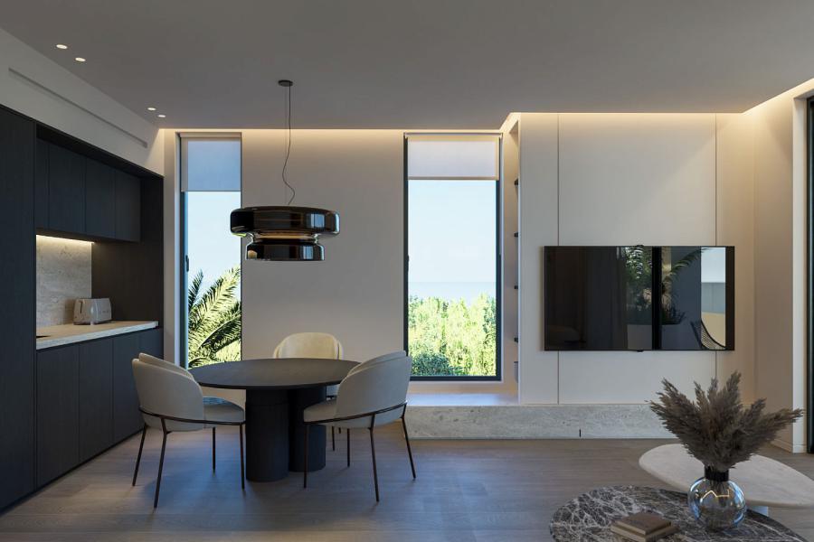 This exceptional 219 sq.m. penthouse maisonette offers a luminous and luxurious living experience in the heart of Glyfada. Currently under construction within a premium development, it occupies the top two levels of the building—173 sq.m. on the 4th floor and 46 sq.m. on the 5th—combining contemporary design with expansive, thoughtfully designed spaces. The fourth floor features an impressive open-plan layout ideal for entertaining, with a sleek gourmet kitchen and island that flows seamlessly into the bright dining area and two spacious living areas. These spaces extend out to a magnificent 150 sq.m. private terrace, creating the perfect setting for indoor–outdoor living and offering an ideal environment to enjoy the beautiful sea views. Three opulent master bedrooms with built-in wardrobes and luxurious en-suite bathrooms complete this level.