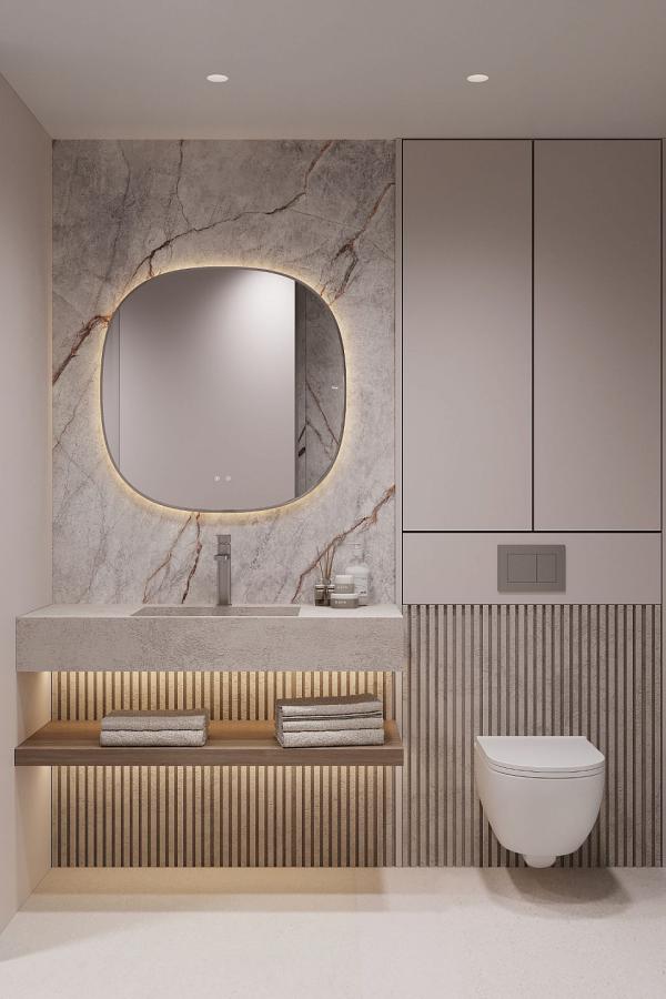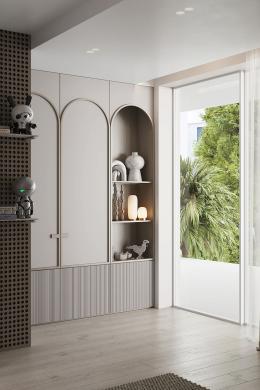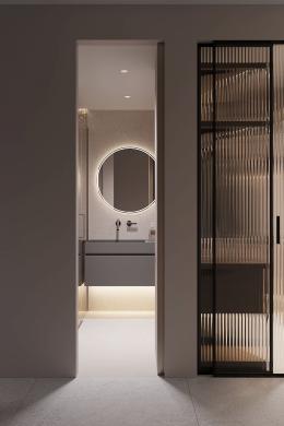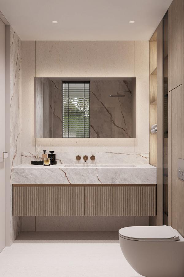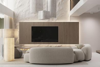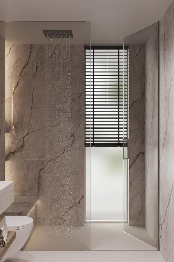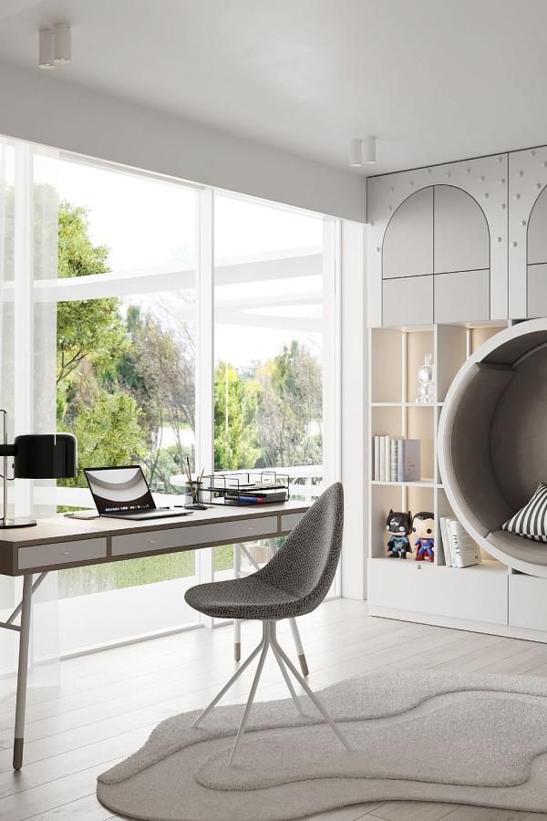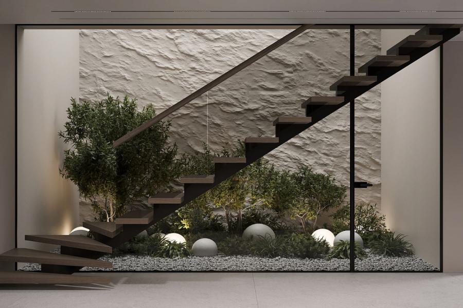 Ascending to the mezzanine level via the private elevator, you will find a spacious master bedroom with an en-suite bathroom and two additional bedrooms. The luminous 103 sq.m. basement expands the home’s versatility even further, offering another master bedroom, a playroom or games room, an additional living area, a laundry room, and its own private 10 sq.m. garden.
