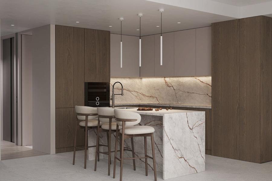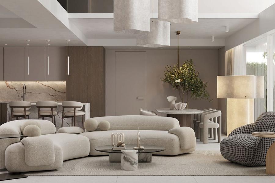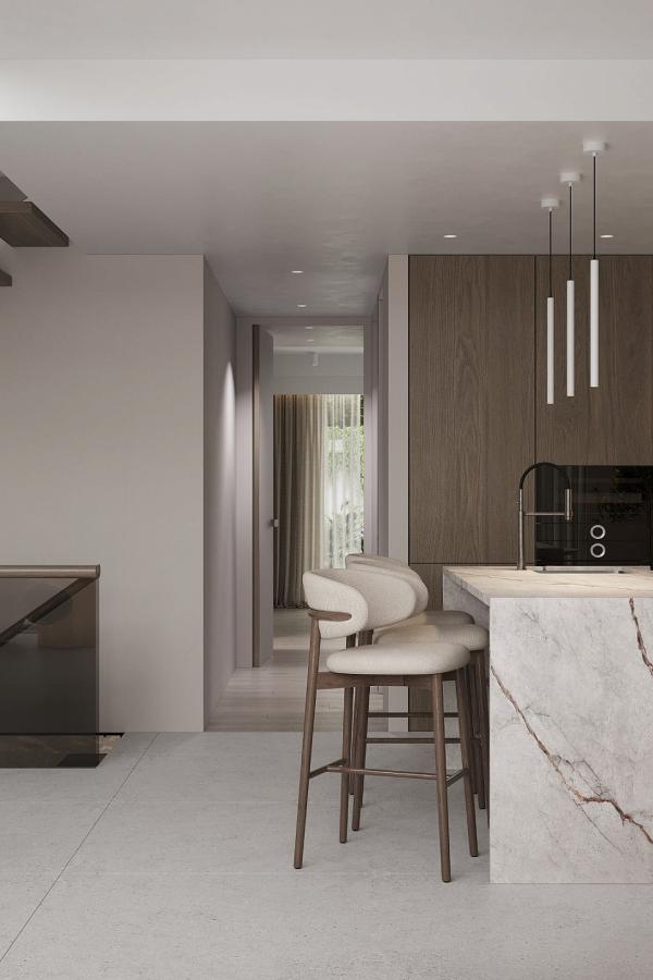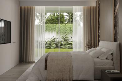 The expansive ground floor sets the tone with its 115 sq.m. open-plan living and dining areas, seamlessly connected to a gourmet kitchen and opening out to a magnificent 320 sq.m. private garden. Here, residents can enjoy year-round relaxation or entertaining beside the 29 sq.m. private pool. A convenient master bedroom is also located on this level for added comfort and flexibility.