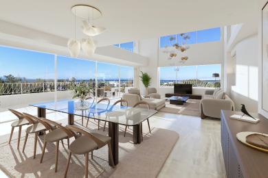 The expansive open-plan layout is enhanced by floor-to-ceiling windows, creating bright, airy, and sophisticated living areas with seamless indoor–outdoor flow. The residence includes three generous master bedrooms and four luxurious bathrooms, ensuring privacy and refined comfort. A sleek gourmet kitchen equipped with premium appliances integrates perfectly with the dining and living areas, making this the ideal setting for both everyday living and stylish entertaining.