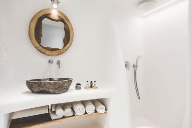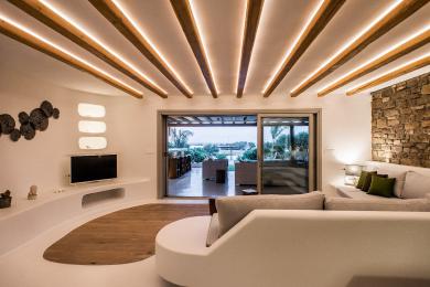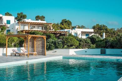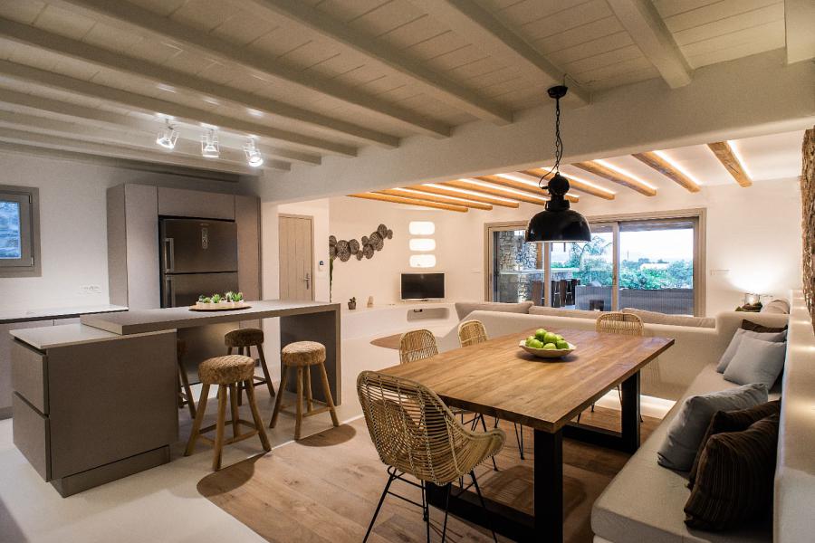 The property can accommodate 8 guests. The house comprises two levels that open to a generous outdoor space with large pool bar & BBQ facilities, which make easy for you to prepare homemade meals for your loved ones during the warm summer nights. The ground floor and the upper level consists of 4 bedrooms total, one cozy living area and a fully equipped kitchen with a dining table for 8 guests.
