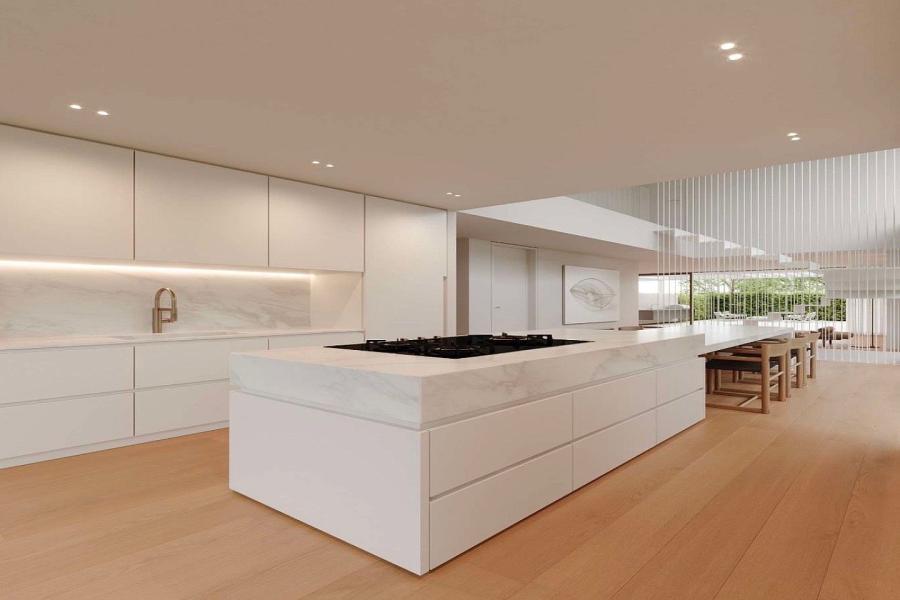 The sleek gourmet kitchen—equipped with premium appliances and a granite island—flows seamlessly into the luminous dining and living areas, elevating the residence into a serene and elegant retreat. The upper level offers a truly extraordinary experience: a private pool and rooftop garden with magnificent sea views, providing an idyllic setting for relaxation and entertainment.
