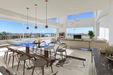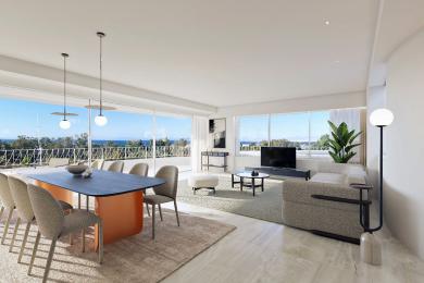 The expansive open-plan layout is enhanced by floor-to-ceiling windows, creating bright, airy, and sophisticated living areas with seamless indoor–outdoor flow. The residence includes three generous master bedrooms and four luxurious bathrooms, ensuring privacy and refined comfort. A sleek gourmet kitchen equipped with premium appliances integrates perfectly with the dining and living areas, making this the ideal setting for both everyday living and stylish entertaining.