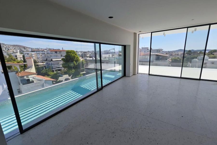 This stunning 240 sqm penthouse spans the 4th and 5th floors and features three master bedrooms and three bathrooms. On the 4th floor, there is an additional small bedroom that can be used for staff. The property also includes a storage room, two underground parking spaces, and access to a heated swimming pool. Located in the desirable area of Voula, it combines luxury and convenience in one elegant home.