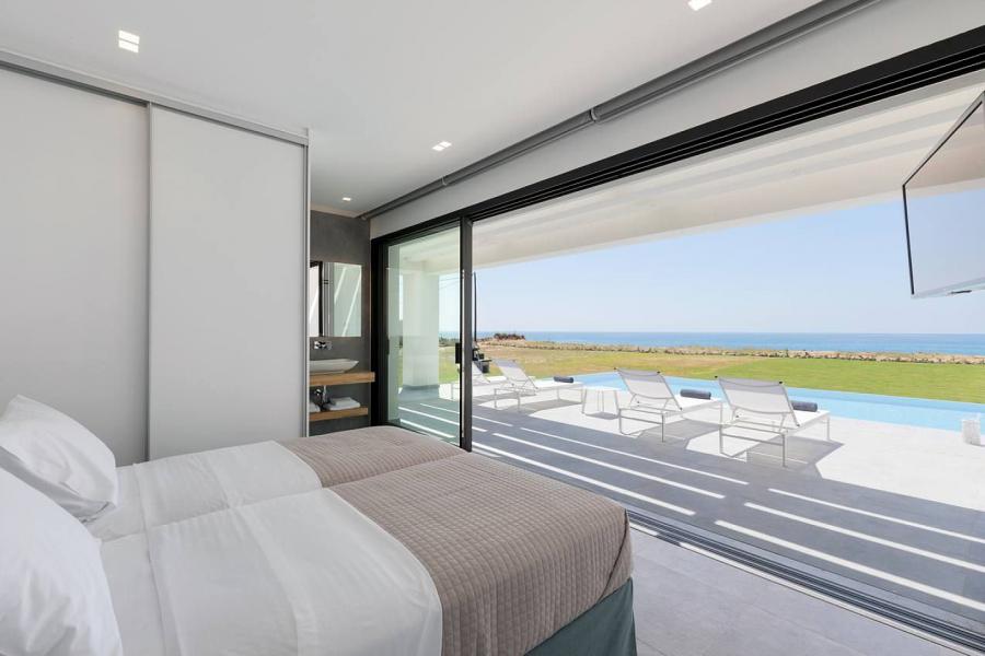 This contemporary sea front villa of 266m2 and a plot of land 5003m2, is located in the west coast, just minutes from the Chalikounas lake, which is a preserved area!