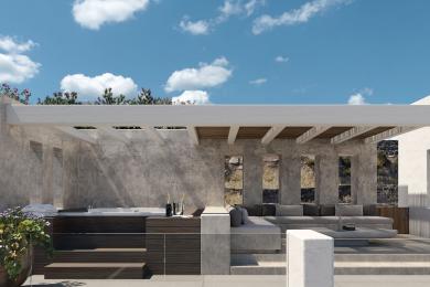 This luxury villa is a newly built 6-bedroom property located in the prime area of Agia Sofia, with breathtaking sunset views over the Aegean Sea and the town of Mykonos.