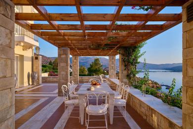 - Large fully equipped kitchen overlooking the pool, with a table seating 8-10 and sea and mountain views on three sides.