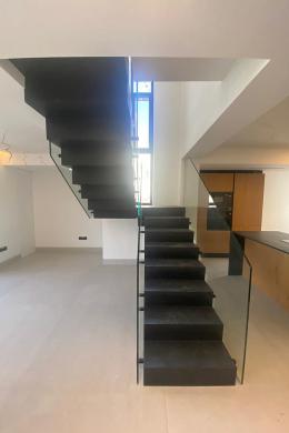Discover contemporary living in this 141.65 sqm residence spanning two levels. The 2nd floor offers 79.94 sqm, complemented by a 61.71 sqm attic. Enjoy 55 sqm of balconies, a Double-Height element, and the warmth of a bioethanol fireplace.