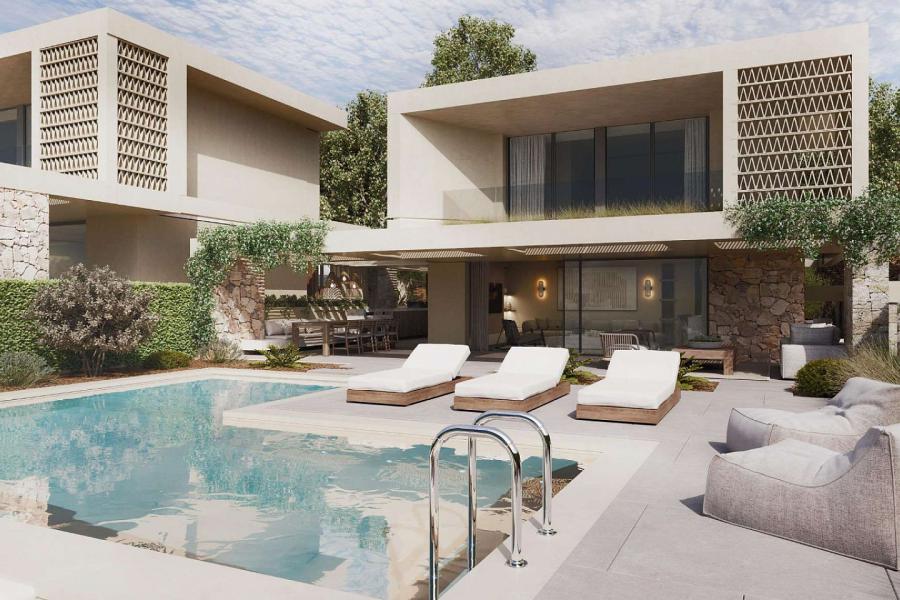 This exceptional three-story villa sits atop a peaceful hillside near Hanioti, Halkidiki, forming part of an exclusive new collection of limited residences created with a focus on architectural simplicity and refined elegance.. Its elevated position ensures privacy, while its proximity to both the beach and the village provides effortless convenience for daily living or holiday escapes.