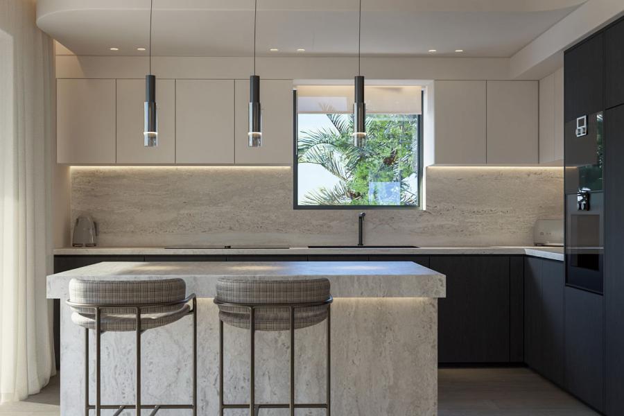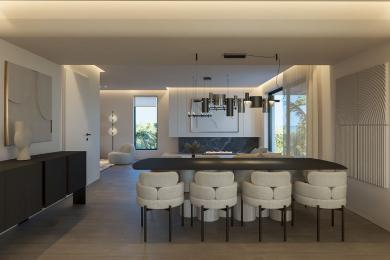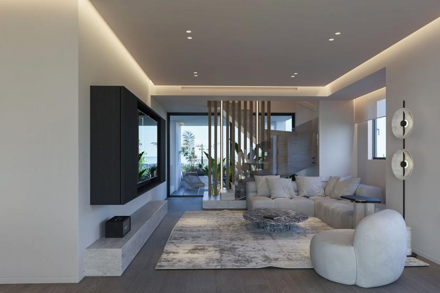 This exceptional 219 sq.m. penthouse maisonette offers a luminous and luxurious living experience in the heart of Glyfada. Currently under construction within a premium development, it occupies the top two levels of the building—173 sq.m. on the 4th floor and 46 sq.m. on the 5th—combining contemporary design with expansive, thoughtfully designed spaces. The fourth floor features an impressive open-plan layout ideal for entertaining, with a sleek gourmet kitchen and island that flows seamlessly into the bright dining area and two spacious living areas. These spaces extend out to a magnificent 150 sq.m. private terrace, creating the perfect setting for indoor–outdoor living and offering an ideal environment to enjoy the beautiful sea views. Three opulent master bedrooms with built-in wardrobes and luxurious en-suite bathrooms complete this level.