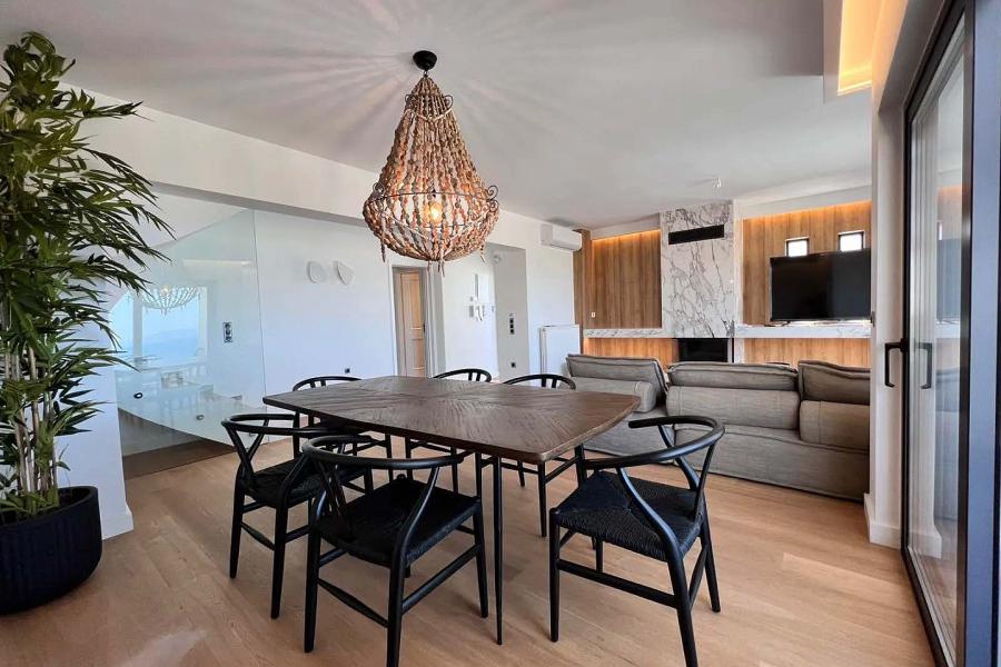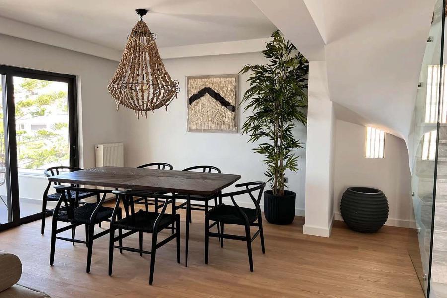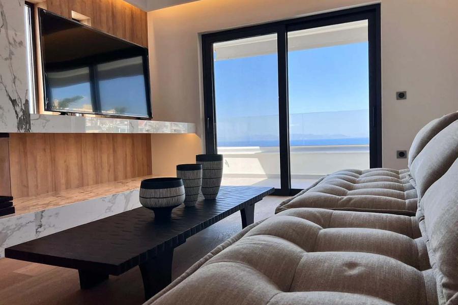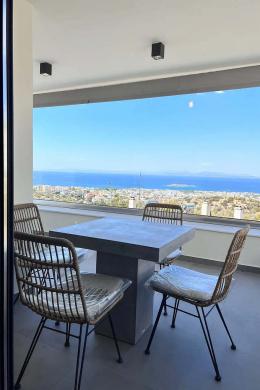 This exquisite 148 sq.m. maisonette spans the 2nd and 3rd floors of a prestigious building in Panorama, Voula, offering a rare combination of luxury, comfort, and breathtaking sea views. Fully renovated in 2023, the residence is sold fully furnished with high-end finishes and thoughtfully designed interiors. The open-plan living and dining areas, complete with a marble fireplace, flow seamlessly onto an expansive balcony overlooking the serene Athenian Riviera.