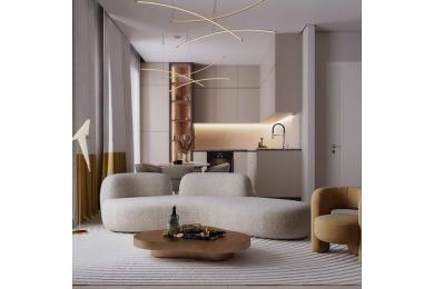 The main level features a bright and expansive living room with large patio doors, a fully equipped open-plan gourmet kitchen, three comfortable bedrooms, two stylish bathrooms, and a guest WC. Spacious balconies extend the living areas and offer serene outlooks.