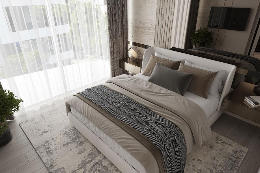 The apartment features a serene master bedroom with a luxurious en-suite bathroom, along with a second well-sized bedroom and a modern, light-filled bathroom. Smart home technology ensures convenience and elevated comfort throughout the space.